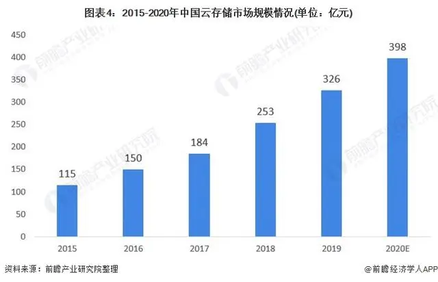 從整體市場規模看,2015年我國云存儲市場規模約為115億元,2019年我國云存儲市場規模已經達到了326億元。2020年,海量數據的持續增長進一步推動了我國企業對云存儲的需求,2020年我國云存儲市場規模預計接近400億元。