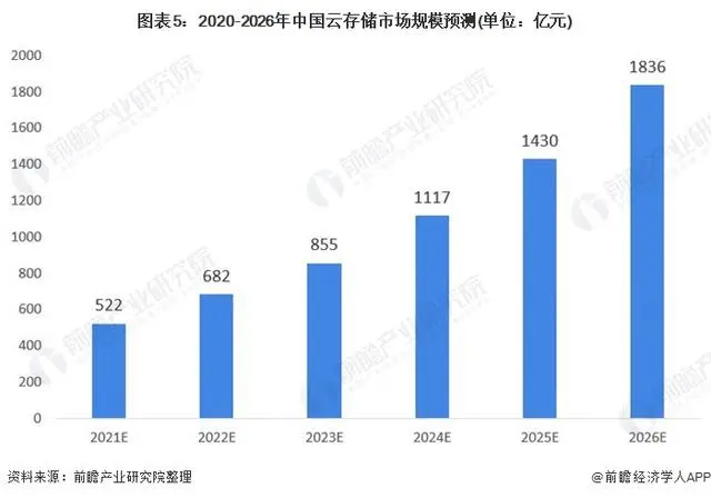 未來,我國5G的發展與云計算交織并進,5G時代網絡速度的提升帶來萬物互聯,而其背后大量的數據需要有云計算強大的計算和存儲能力支撐,我國云存儲市場發展空間大,市場規模在未來幾年仍將保持較快的增速增長,2026年有望突破1800億元。